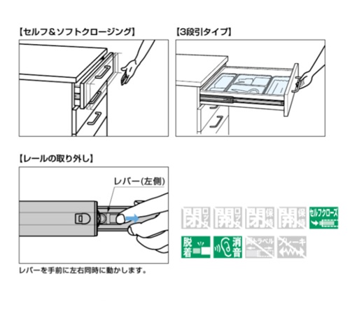 ランプ セルフ&ソフトクロージング機能付き3段引スライドレール 3670-250